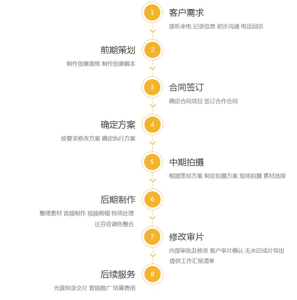 盛大博通(視頻工廠)全方位對接客戶需求,提供創(chuàng)意策劃、執(zhí)行拍攝、后期特效、剪輯、調(diào)色等一系列優(yōu)質(zhì)服務(wù)。同時借助高效的視頻拆解報價系統(tǒng),讓客戶在瀏覽樣片的同時得到一份翔實的報價單,對該項目財務(wù)流向一目了然。在未來的企業(yè)發(fā)展中,信息傳播無疑是重要一站。視頻工廠作為立足網(wǎng)絡(luò)時代的新型宣傳片制作平臺,以"深度洞察,精確行動"為專業(yè)基準,以"尊重溝通,合作共贏"為企業(yè)愿景,愿與您在新時代協(xié)力前行。